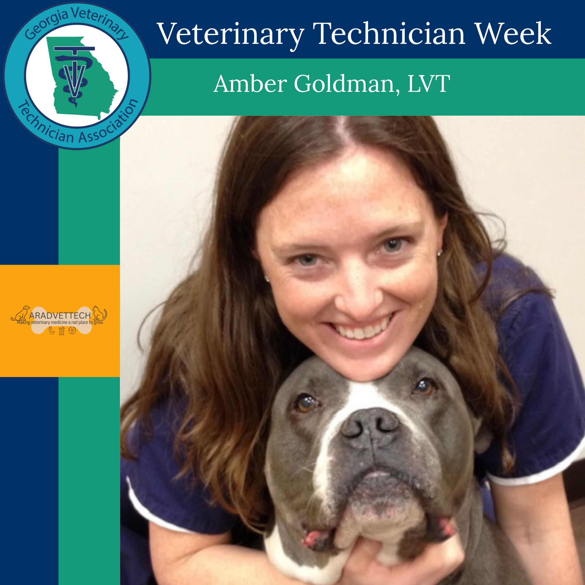 On this triumphant Thursday of National Veterinary Technician Week, we are so excited to spotlight Amber Goldman, LVT. Founder of A RAD VET TECH, GVTA CE committee member extraordinaire, and incredible human - Amber has entered the chat 💬